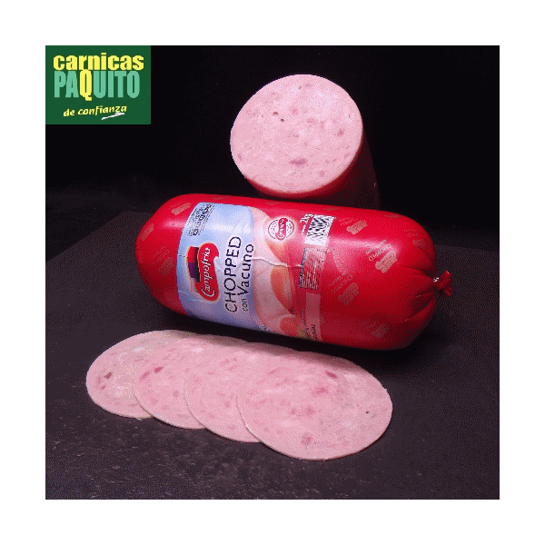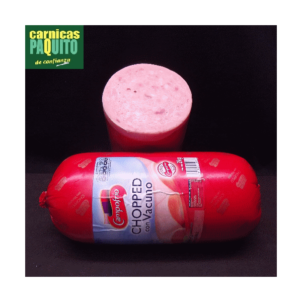 Carne,grasa y cortezas de cerdo,agua,carne de vacuno, carne separada mecánicamente de pollo,almidón,sal, dextrosa,estabilizantes (E-451,E-407,E-412,E-508) aroma,potenciador del sabor (E-621),antioxidante (E-316), conservador (E-250).